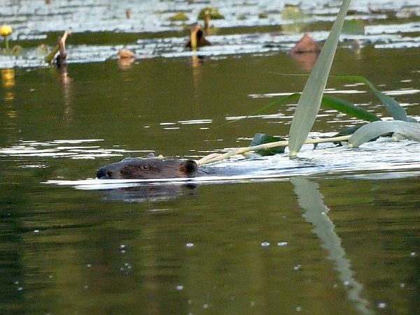 A short while ago, I watched all the members of the local beaver family on an outing together in the main pond, a sight I see very rarely. I counted two adults and four kits, all swimming in a large circle, stopping occasionally to nibble on an aquatic plant. Here, one of the adults had cut down a large reed and was swimming with it to the boardwalks, for a purpose known only to her.