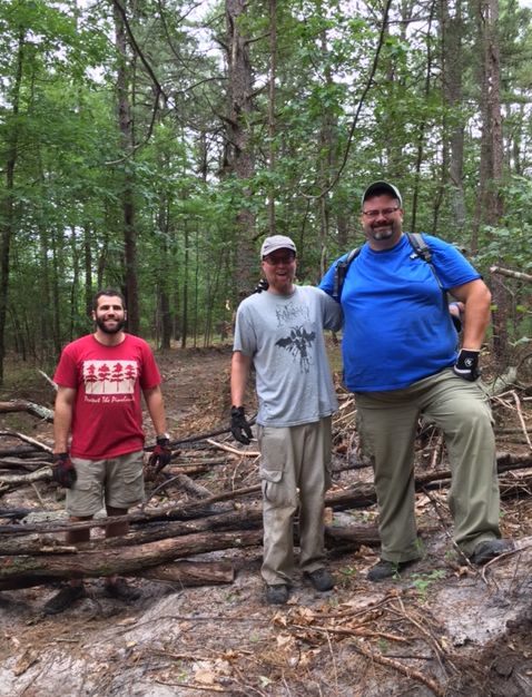 The photo of volunteers shows, from left to right, Jason Howell (Pinelands Protection Alliance), Bob Cunningham and Mike Kaliss. We thank them and all the others who came out!