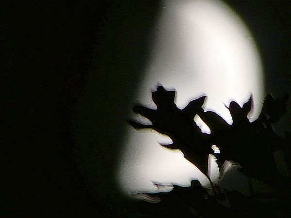 I walked outside one recent evening to try to photograph the rising, waxing moon over the main pond at the Refuge. As the moon appeared, it created a silhouette of some oak leaves hanging far out on their branch. A lovely sight, even if not precisely what I wanted.