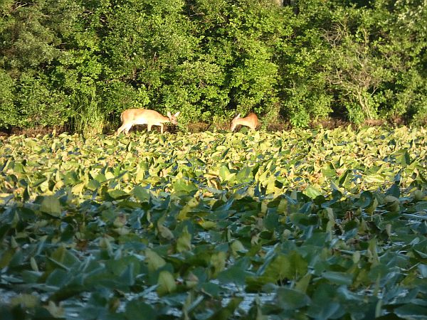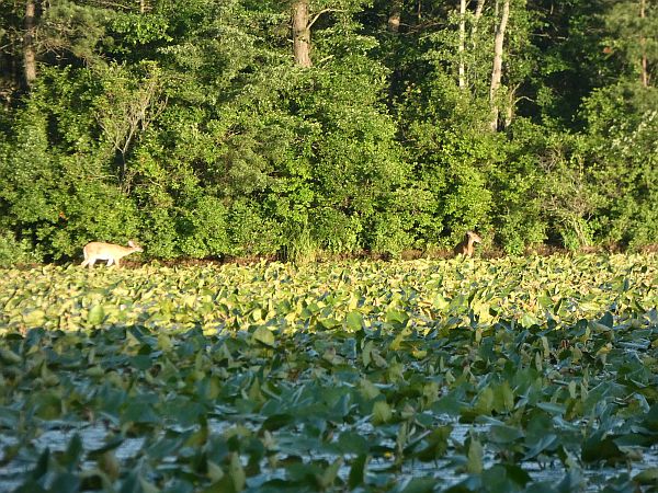 While sitting at the edge of the main pond, I recently watched a white-tailed deer browsing the water lily plants near the shore. Minutes later, a second deer emerged from the woods some distance apart from the first. The first deer looked up and, minute by minute, moved herself closer until the two were companionably side-by-side enjoying a late-afternoon snack together. It was a touching reminder that our wild neighbors have the same needs as we do for friends and companionship.