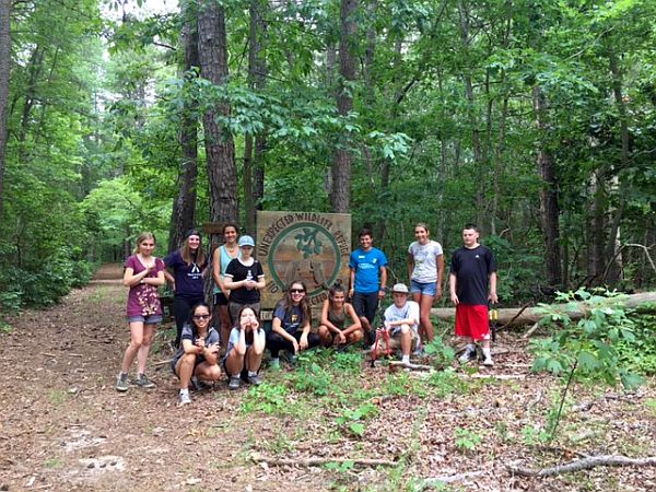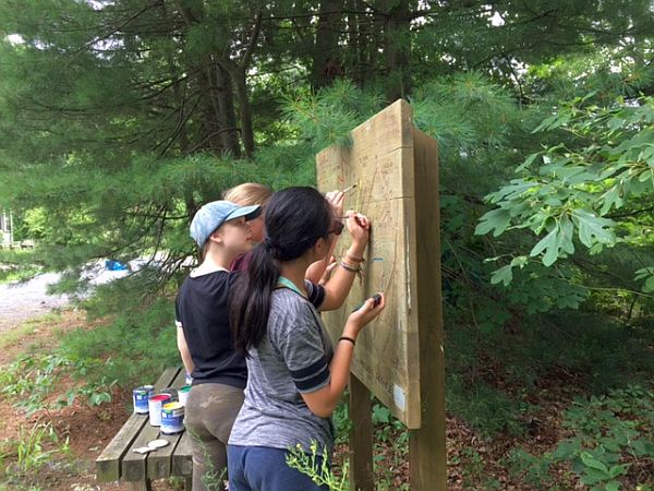 We recently enjoyed a volunteer day with the kids from YMCA Camp Ockanickon (Medford Township, New Jersey). The kids came out for hours of trail work, clipping brush and cleaning fallen branches from the trails. One group went to work repainting our wooden trail-map sign. Due to years of weathering, the paint on the map had become faded making the trails illegible. The marked trails are now bright and easy to read. This sign is not just helpful for visitor orientation. People can take a photo with their cell phones and use that as they navigate our trails. Thanks, Camp Ockanickon, for spending the day with us!