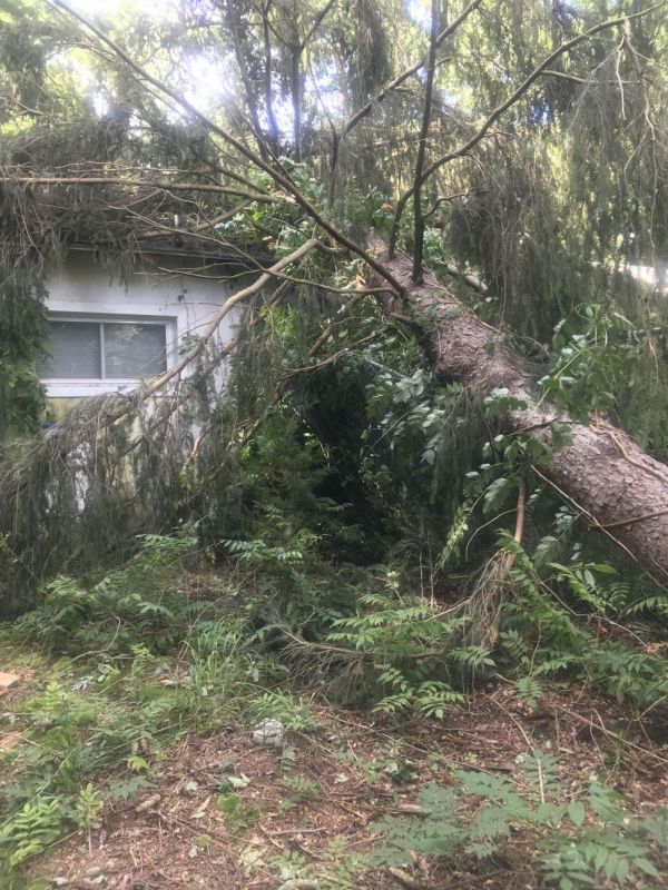 During a tropical storm in August a tree was blown over onto the roof of the Miller House, a building that is a part of the Refuge. We have had plans to turn it into a multipurpose volunteer/educational center and library, sometime in the not too distant future. The fallen tree caused considerable damage including a hole in the roof and damage to the septic system from the uprooting of the large rootball. Half of the portion that was leaning on the roof has been removed and we are working with our insurance and construction companies to remove the rest, and repair the roof and septic system.