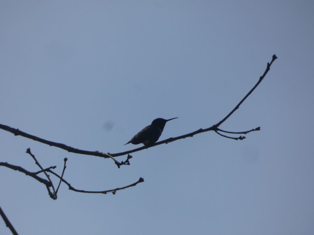 When the hummingbird vine around Headquarters was in full bloom, hummingbirds were frequent visitors. Hummingbirds are incredible flyers, in addition to forward flight, they can fly backward, sideways, straight up, and they can hover in place extensively. They beat their wings quite rapidly, with the ruby-throated beating their wings 80 times per second, and they can also rotate their wings 180 degrees in all directions. Their movements can make them tricky to photograph, though luckily this male rested a bit, giving our manager just enough time to take a photo of his lovely silhouette. At night hummingbirds enter a hibernation-like state called torpor during which their body temperature, heart rate, and breathing rate all drop, allowing them to conserve energy.