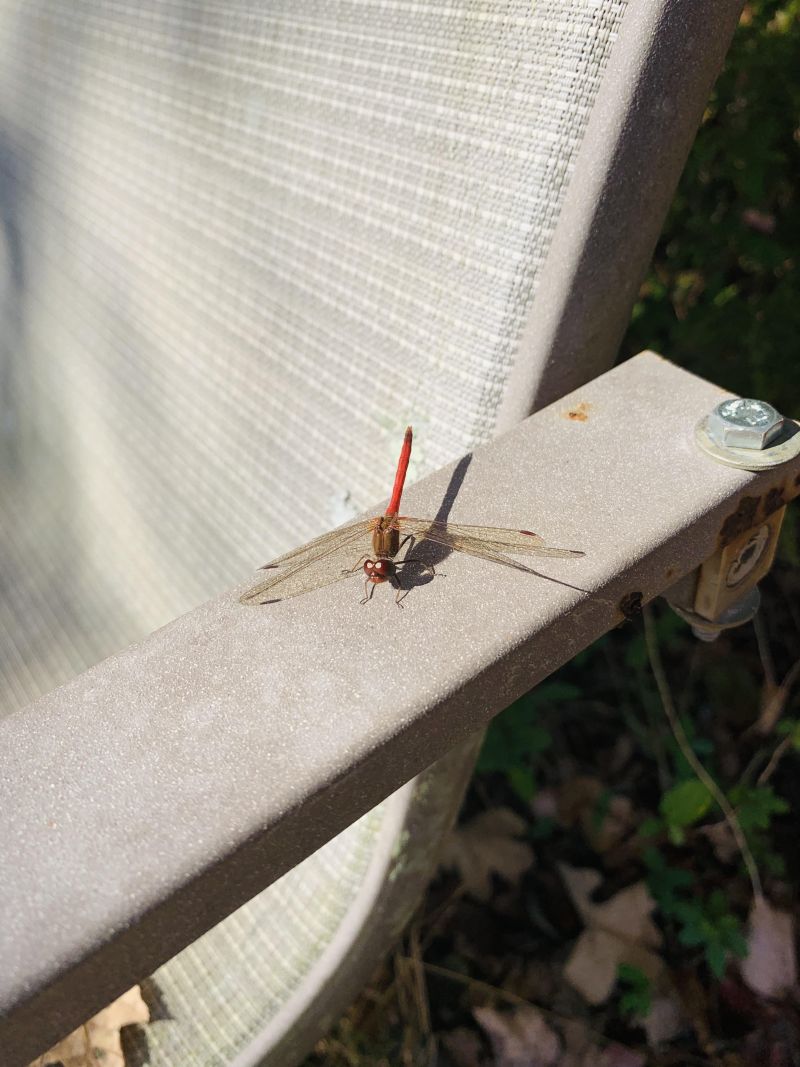 This autumn meadowhawk dragonfly was seen flying around at the viewing area on the main pond. Autumn meadowhawks are a common late-season dragonfly found throughout NJ, usually near permanent bodies of water, often in wooded habitats. As their name suggests, they are an abundant autumn species. One of the most cold-hardy dragonflies in North America, they frequently persist into November or December during milder weather, provided nights don't drop far below freezing. Although this individual was photographed in November, in keeping with their flight record, we have observed these dragonflies around the Refuge as recently as mid December.