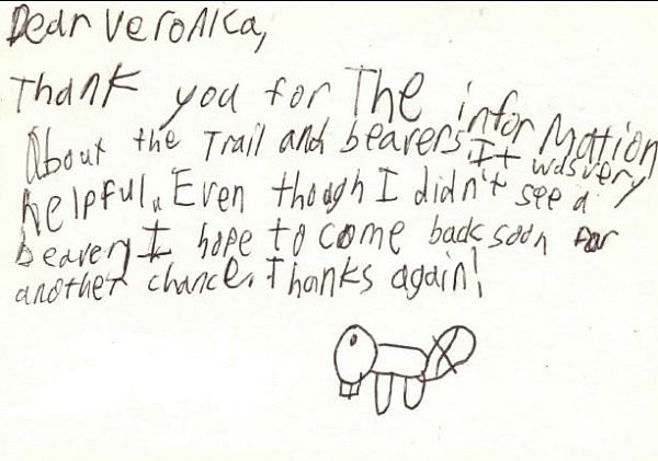As we reported on Facebook, notes like this one sent to us by this boy remind us of how important it is to instill wonder and respect for wildlife in the children of the world. These young people will be making critical decisions about how human beings relate to their environment. They are more likely to protect what or whom they understand. That is why one of the major programs of the Refuge is to provide humane and environmentally responsible education for the public.
